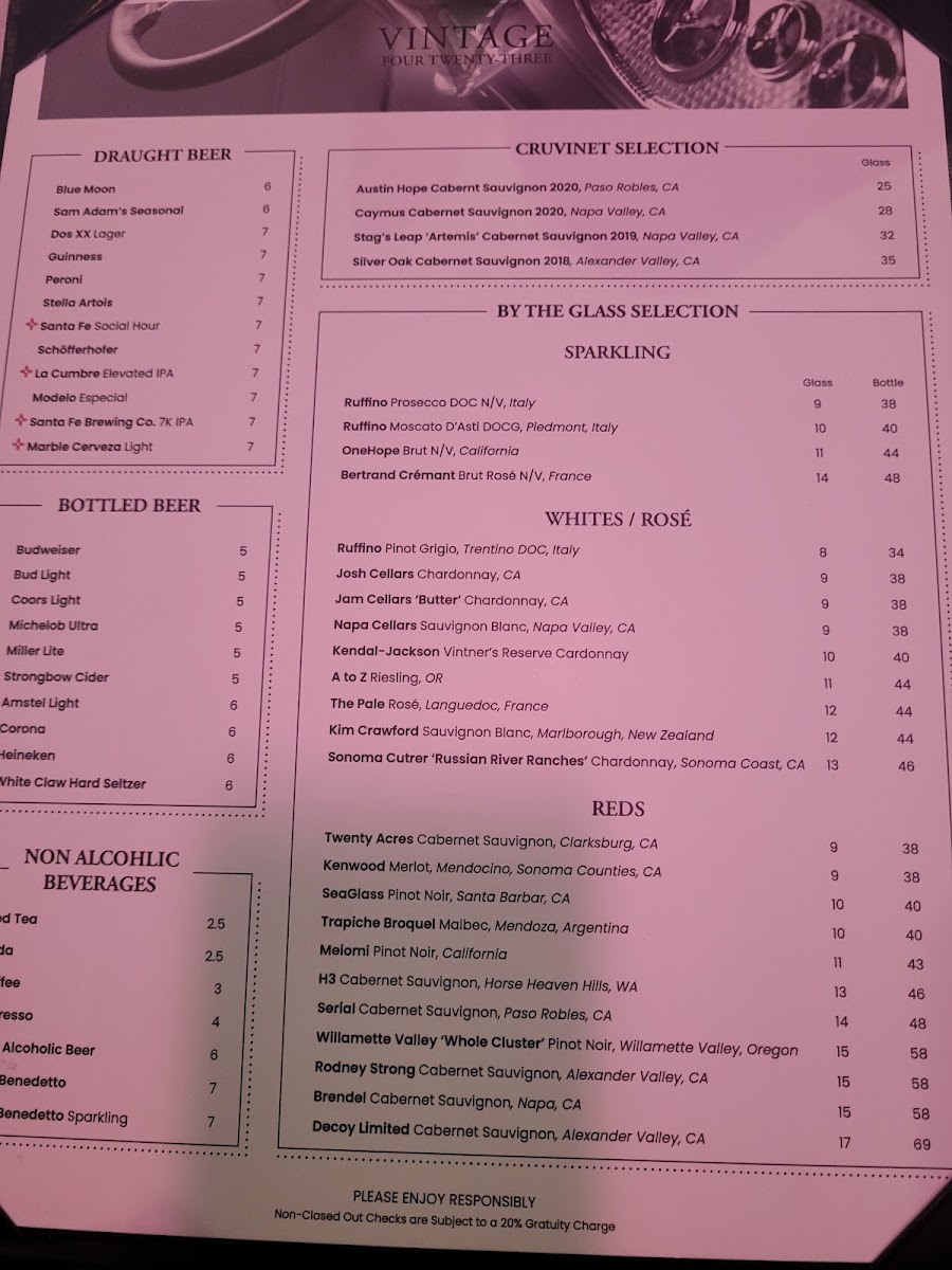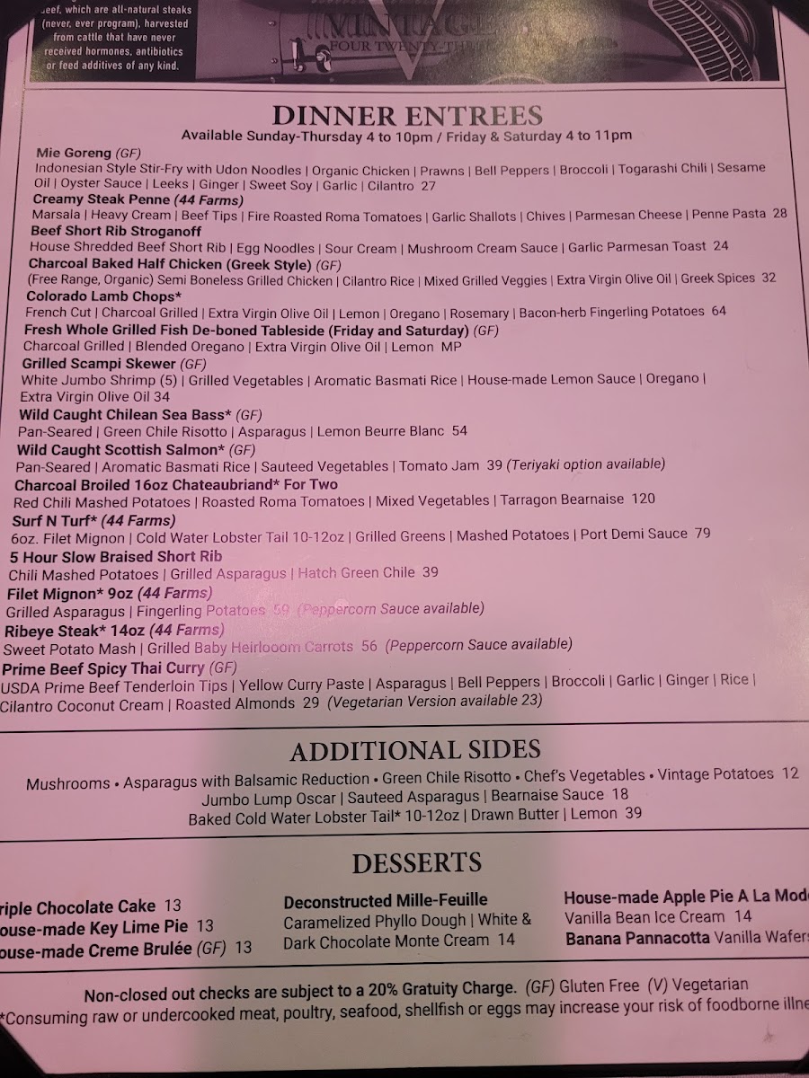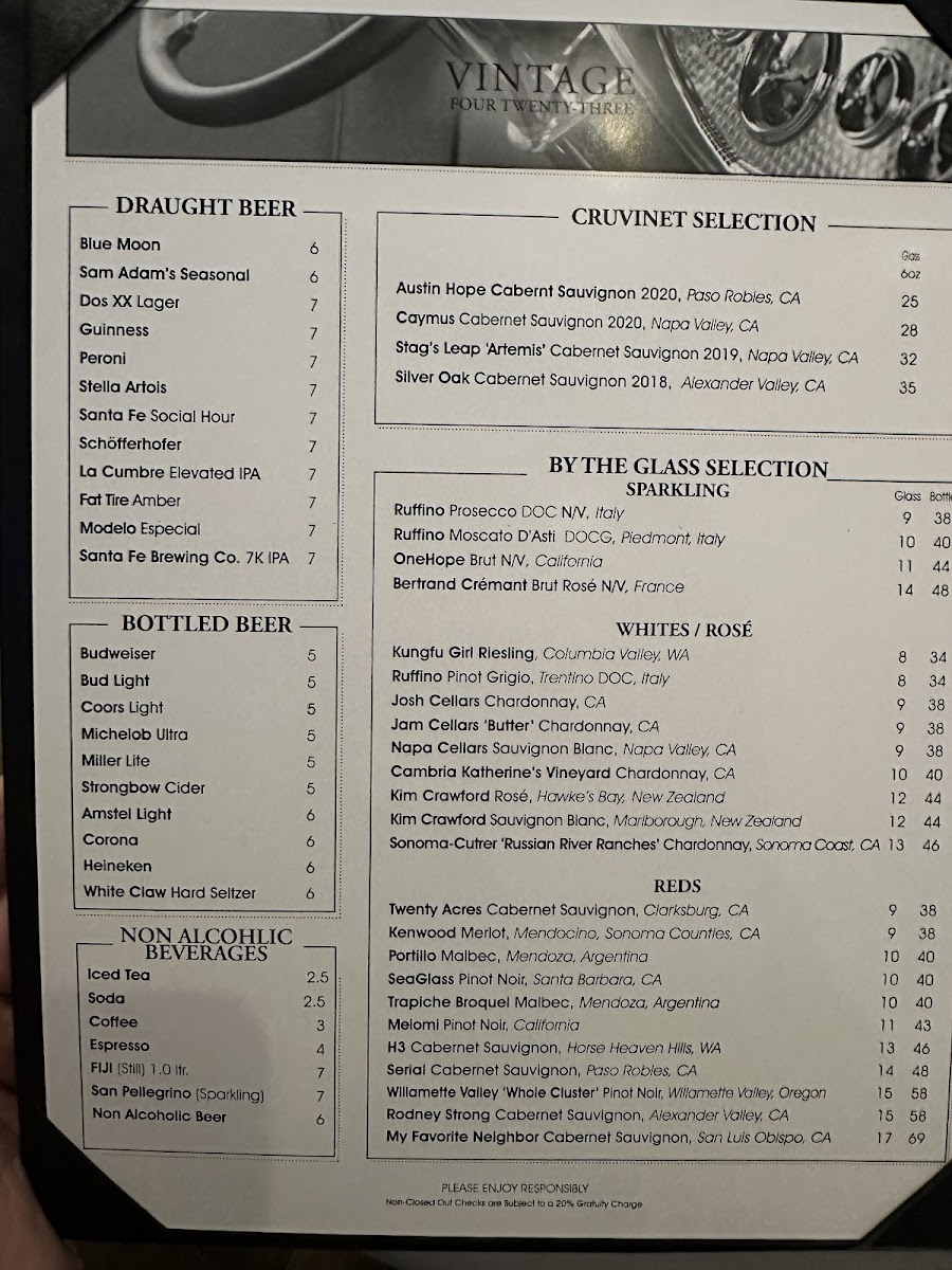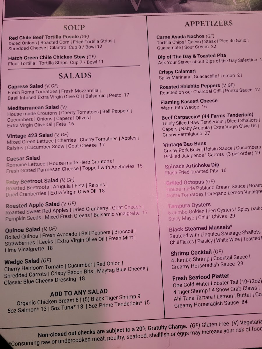 Welcome to Vintage 423, a modern steak house tucked away at 8000 Paseo Del Norte NE Suite A1, Albuquerque, NM 87122, where culinary artistry meets a vibrant atmosphere. This hotspot is perfect for meat lovers and anyone looking to savor a memorable dining experience in Albuquerque.