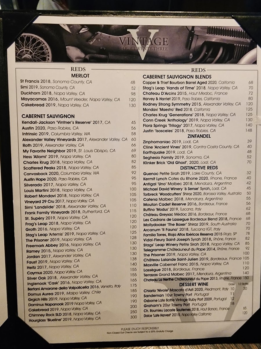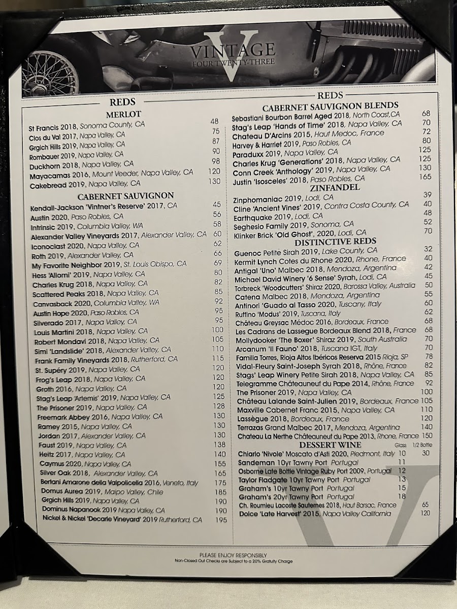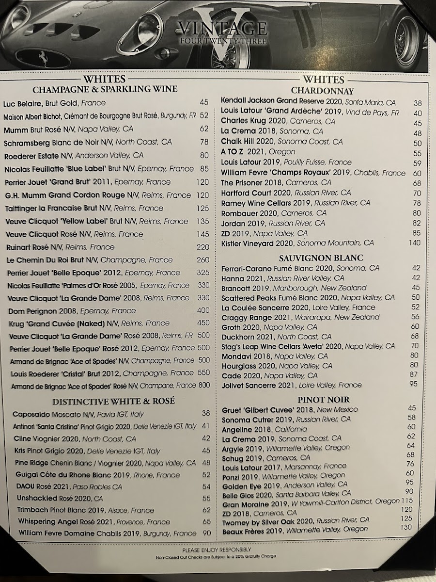 Step inside to discover a stylishly designed venue that radiates warmth and sophistication, accentuated by motorsport-inspired decor—an homage to owner Jason Daskalos’s passion for racing. Whether you're celebrating a special occasion or simply indulging in a delectable meal, the ambiance at Vintage 423 strikes a perfect balance between upscale and inviting.